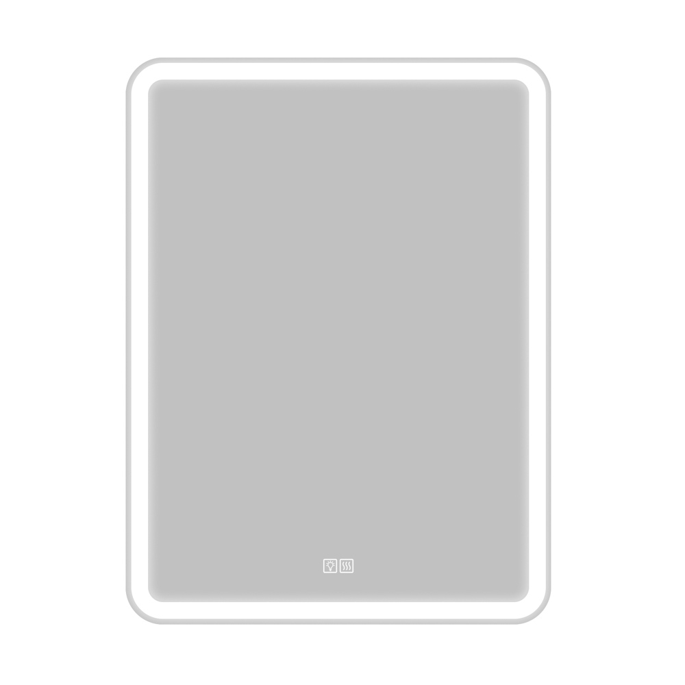На зеркале установлен двойной сенсор, блок увеличеной мощности, с помощью которого производиться отдельное включение подсветки и подогрева зеркала. Однократное нажатие сенсора включает или выключает функцию, соответственно символу на зеркале, длительное удержание выключает подсветку клавиш сенсора.